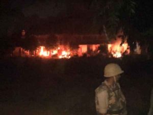 इलाहाबाद: इलाहाबाद विश्वविद्यालय में शुक्रवार देर रात छात्रसंघ चुनाव परिणाम घोषित होते ही माहौल बिगड़ गया। यहां ताबड़तोड़ बमबाजी के साथ ही आगजनी की गई। इस दौरान हॉलैंड हॉल हास्टल में नवनिर्वाचित उदय प्रकाश यादव और निवर्तमान अध्यक्ष अवनीश यादव समेत आठ लोगों के कमरे आग के हवाले कर दिए गए। आगजनी की खबर होते ही एसएसपी नितिन तिवारी समेत सहित तमाम आला अधिकारी मौके पर पहुंच गए और पूरे परिसर को पुलिस छावनी में तबदील कर दिया गया।